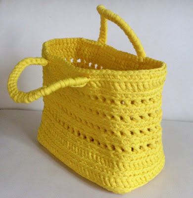 Druga myśl - torebka i fason, prosty koszyczek, o prostokątnym dnie. Włóczka idealnie nadająca się na torebki to Summer Bags włoskiej firmy Lana Gatto. Jest to tasiemka o szer. ok 0,5 cm.