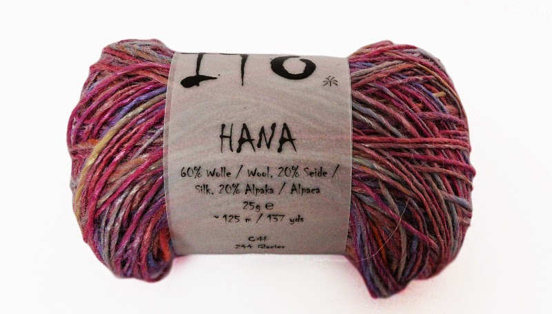 Hana to 60% wełny, 20% jedwabiu i 20% alpaki. W 25 g motkach znajdziemy 125 m nitki. Jest to przędza w przepięknych, kolorowych zestawieniach. Skład podpowiada nam, że wyroby będą nam służyć raczej w okresie jesienno-zimowym.