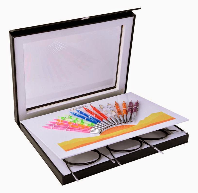 Druty wprost zachwycają kolorami i naprawdę nie sposób oderwać od nich oczu :) Wzory i kolory drutów zostały zaprojektowane przez wybitnych specjalistów i są jedyne w sowim rodzaju, każdy rozmiar ma swój unikalny rozkład barw. Zestaw jest bardzo ekskluzywny i mieści się w eleganckiej czarnej szkatułce z okienkiem, a druty ułożone są w niej na kształt promieni słonecznych.Takie narzędzia cieszą nie tylko ducha, ale także oczy :)