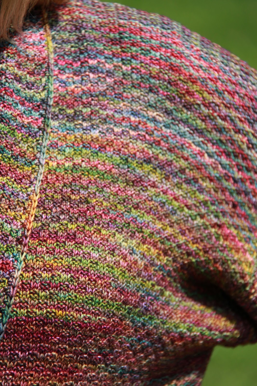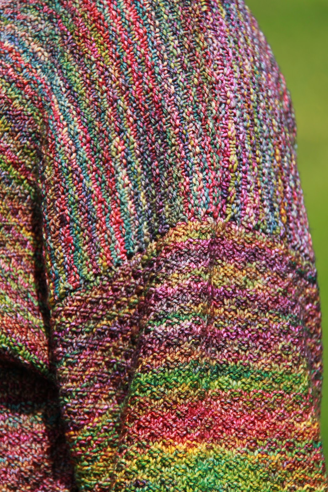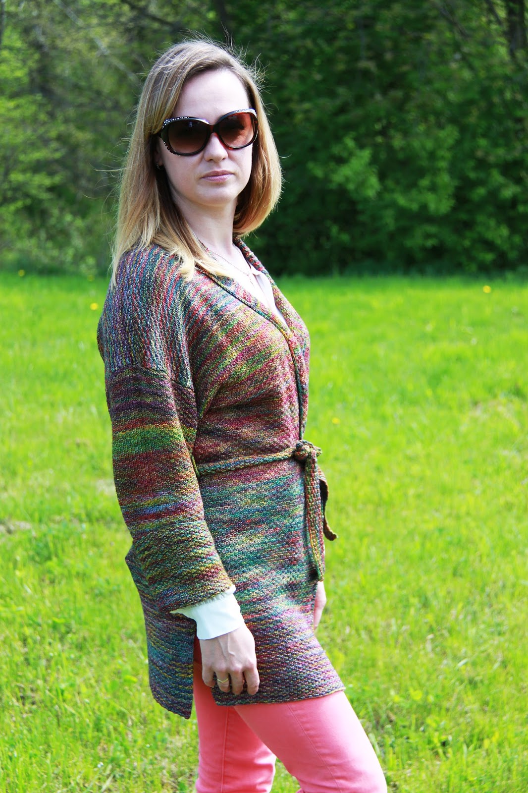 Kardigan zrobiony jest z niecałych 6 motków Socka (4 motki kolor - Diana i 2 motki Primavera). Muszę Wam powiedzieć, że moja mama lubi dziergać na drutach 2-milimetrowych i w zasadzie to są jej jedyne druty. Może dlatego włóczki weszło dosyć sporo ale za to sweterek "trzyma formę" i się nie naciąga. Rękawy wszyte są na prosto, czyli tak samo jak ja to zrobiłam w mojej wersji kardigana z tej cudownej nitki.