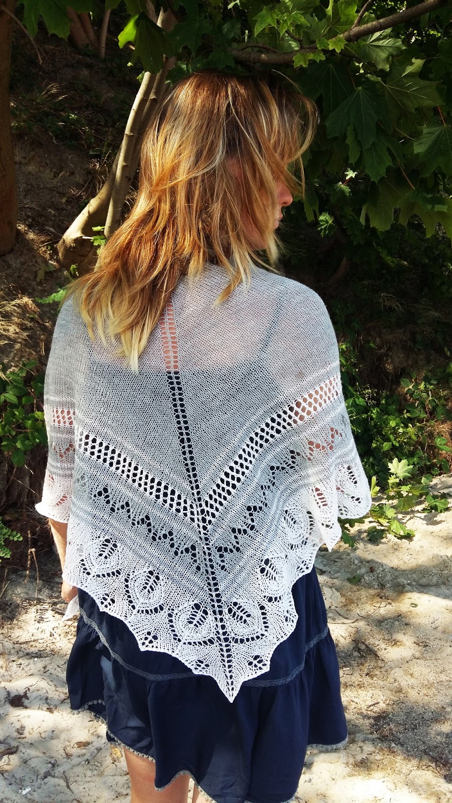 Ostatnią dzianiną, która miała swój czas nad morzem, była chusta z Merino Lace. Cudowna wełna, z której wychodzą cudowne chusty.