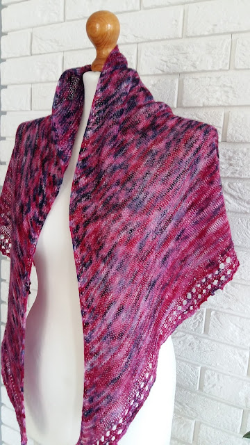 Włóczka - Sepino Lace, której użyłam jest też z tych cieńszych ale idealnie nadających się na tego typu dzianiny. Kolory układają się świetnie i cudownie prezentują się jako gotowa do noszenia chusta.