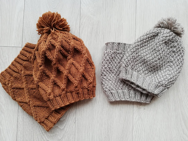 A tak wyglądają razem dwa komplety, które sprawiły mi ogromną przyjemność podczas dziergania ich...