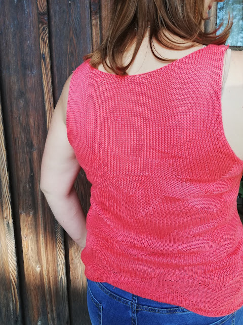 Prezentuję Wam właśnie bluzkę wykonaną z tej cudownej włóczki. Na cały udzierg weszło 4,5 motka a robiona była na drutach nr 4 mm.