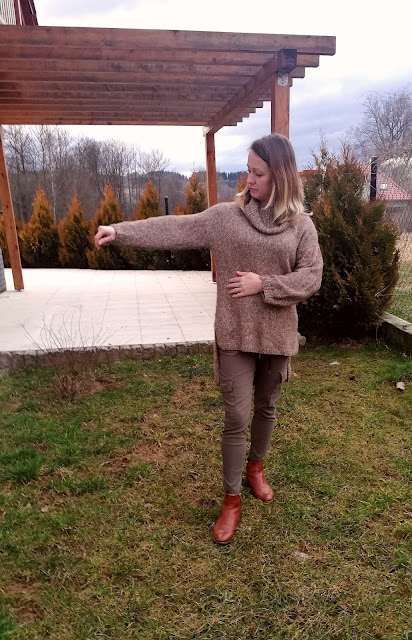 Tym razem patrząc na włóczkę Alpaca Star, pierwsze co przyszło mi do głowy, to to, że z tej włóczki będzie super fajny i luźny właśnie golf. Tak też zrobiłam i dodam tylko, że zrobiłam go dosyć szybko. Druty, na których dziergałam to 4 mm, nitka w miarę gruba, a ścieg bardzo prosty, wiec poszło gładko i z przyjemnością.
