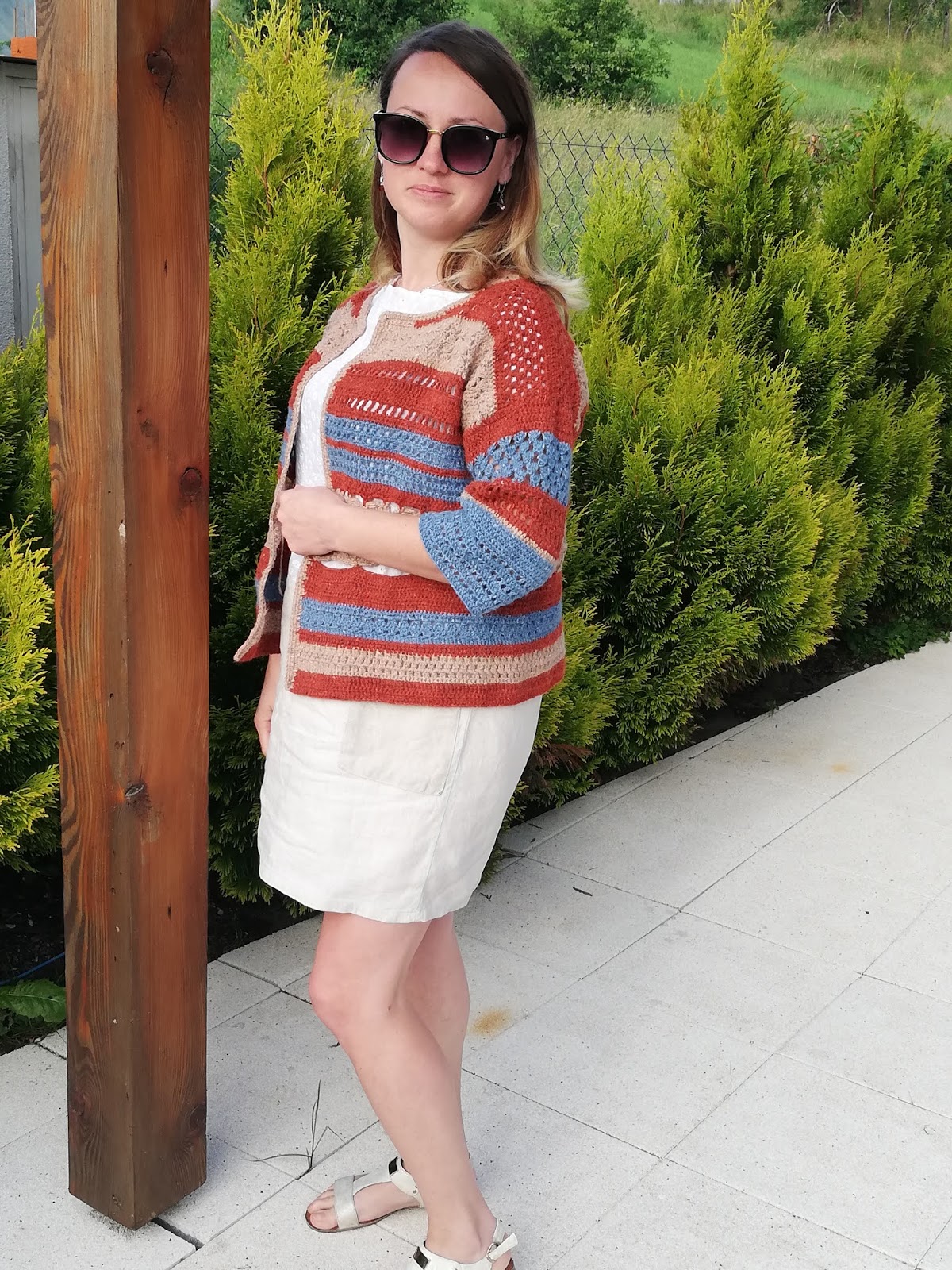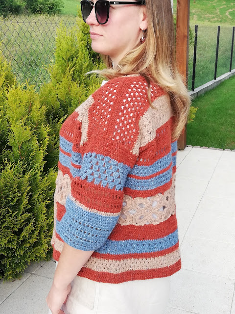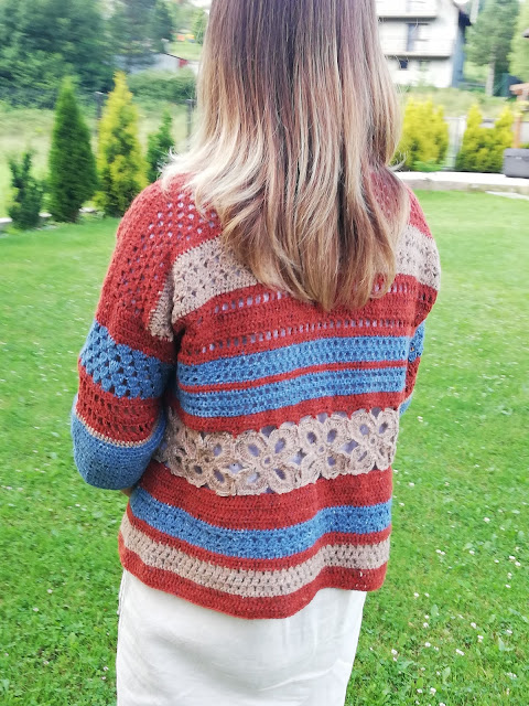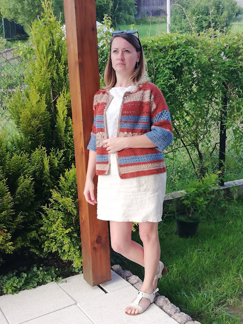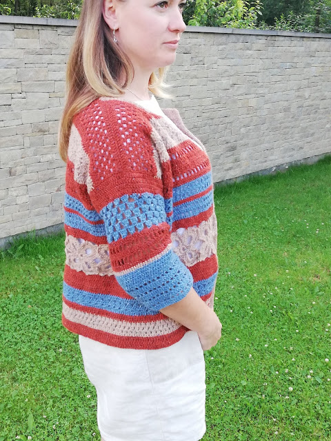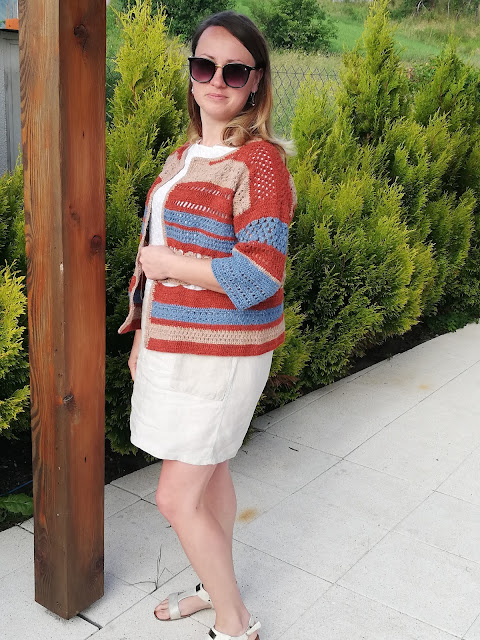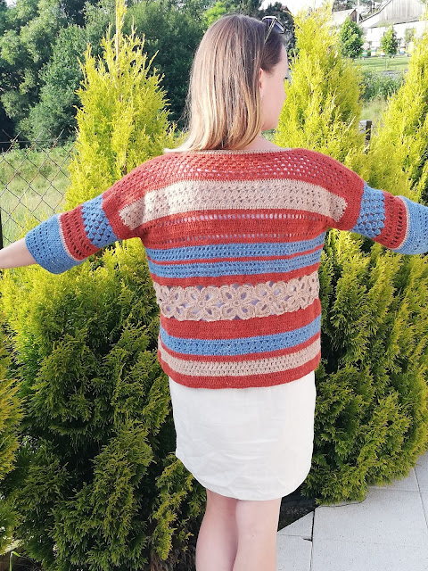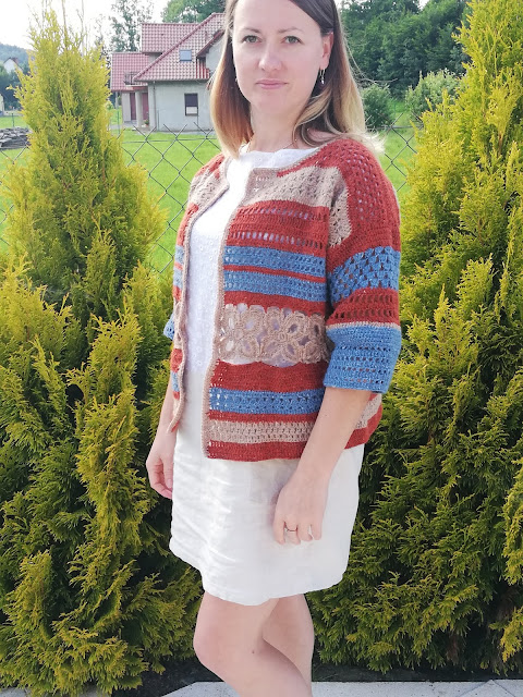 Początkowo miał to być płaszczyk ale uwzględniając moją niecierpliwość, stwierdziłam, że prawdopodobnie skończy się na sweterku i tak też się stało.