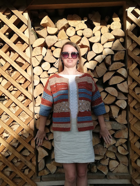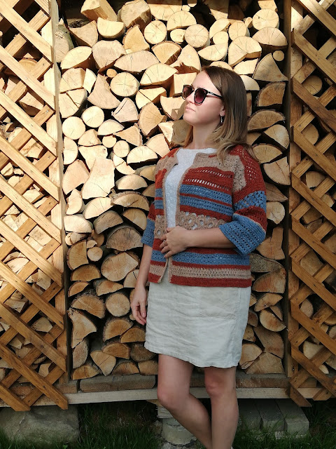 Połączenie kolorów to był czysty przypadek. Po prostu wzięłam do ręki pierwsze z brzegu motki i uznałam, że są całkiem ciekawym połączeniem. Potem myślałam nad wzorem. Co prawda, zaczęłam dziergać na drutach ale w tamtym momencie była dla mnie zbyt cienka ta nitka, więc postanowiłam, że odpowiednią grubość dzianiny uzyskam na szydełku. Jak to u mnie bywa, poszłam na żywioł i z każdym kolejnym rzędem rodziły się w mojej głowie nowe wzory.