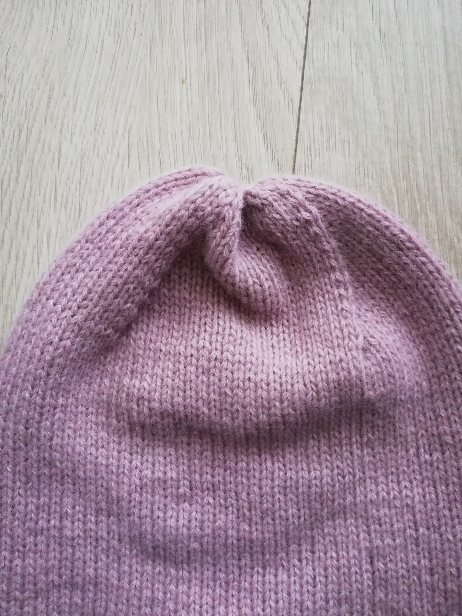 Na dole czapki zrobiłam dwa rzędy ryżem tj, jedno oczko prawe i jedno oczko lewe (w kolejnym okrążeniu na zmianę). Daje to stabilność dzianiny i czapka nie "zwija się".