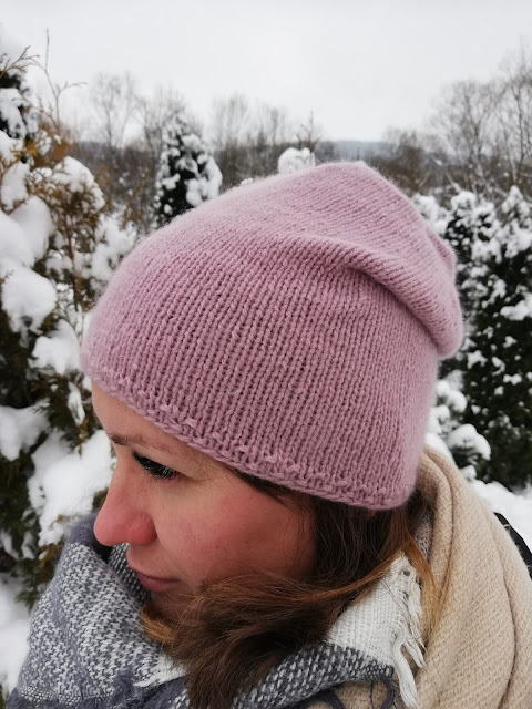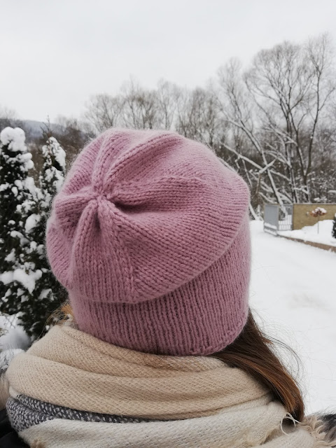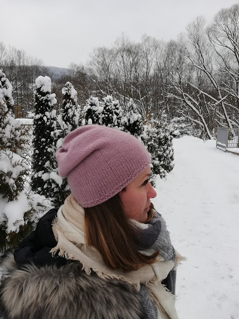 Czapka z włóczki Cardiff Cashmere Small, którą zrobiła jeszcze na jesieni, jest ciepła choć dzianina wydaję się cienka. Wydziergałam ją z podwójnej nitki tej wełny z dwóch motków. Jest bardzo delikatna i nadaje się zarówno do noszenia jesienią lub wiosną jak i zimą.