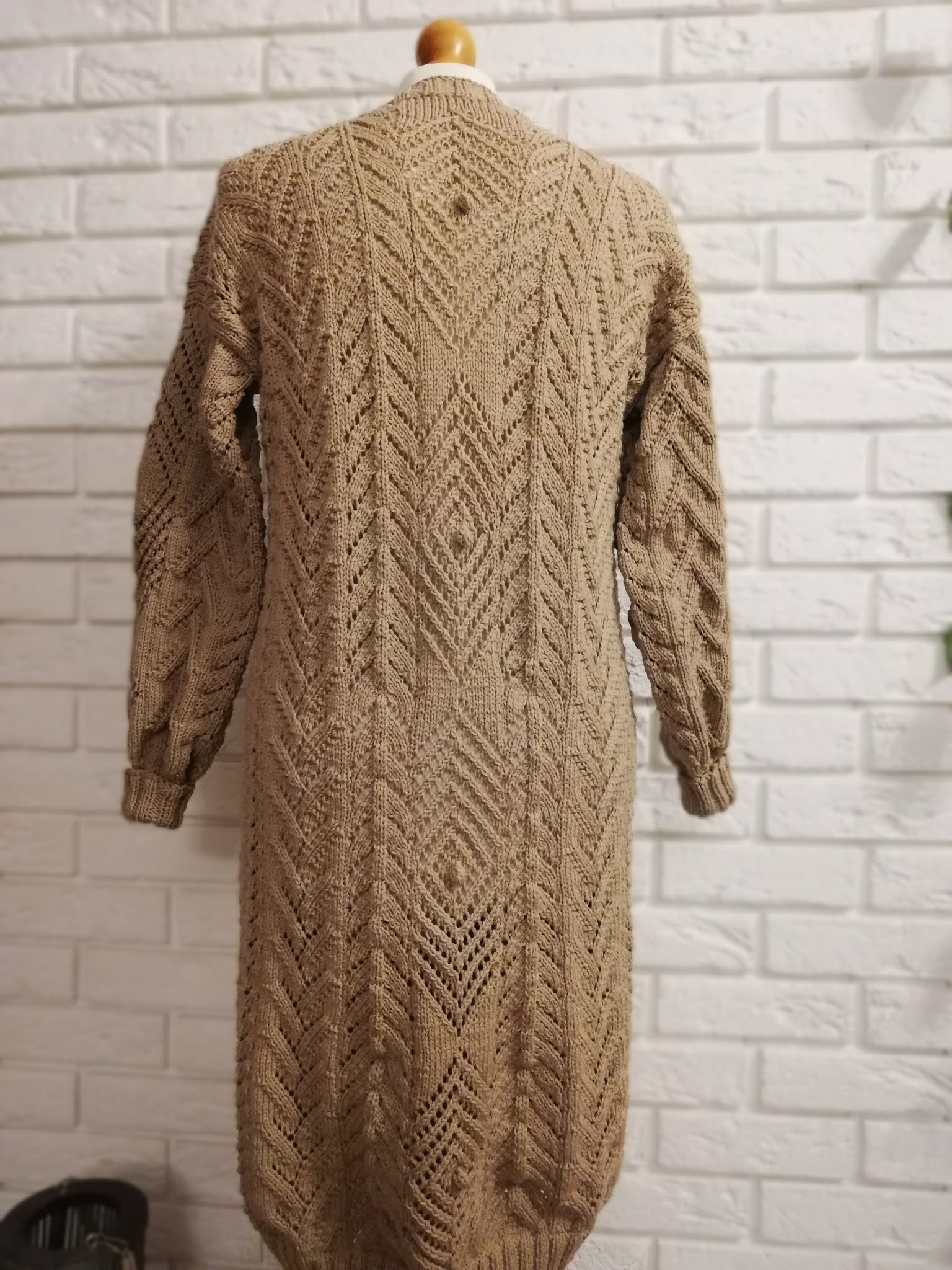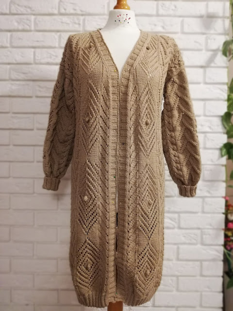 Długi karsdigan z włóczki Perlata